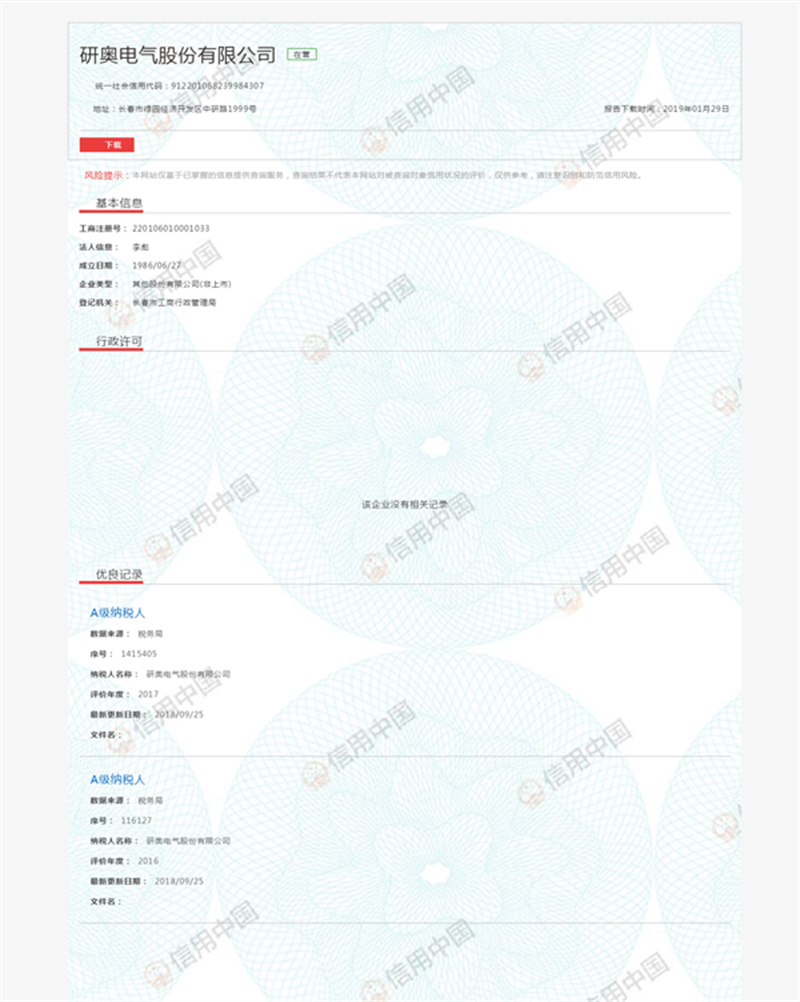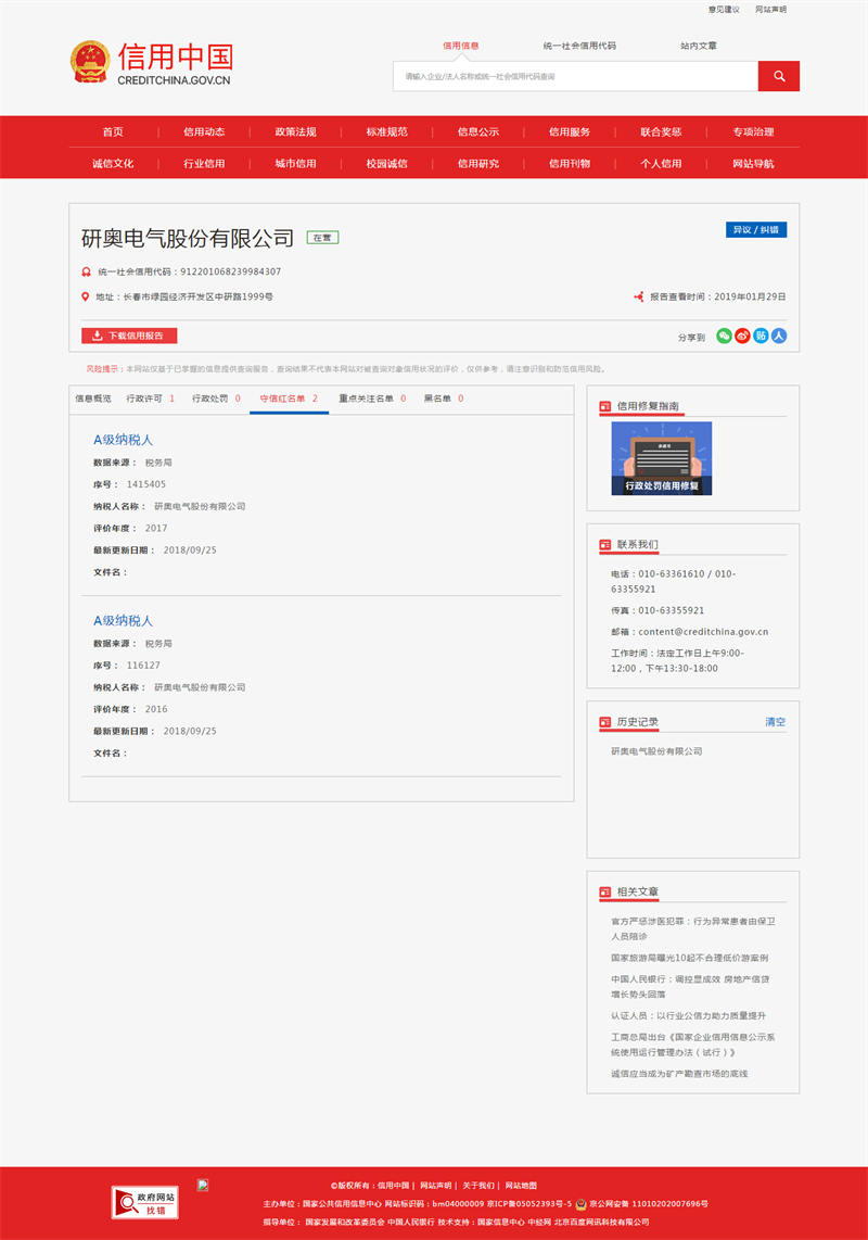 公司被列入信用中国守信企业红榜名单